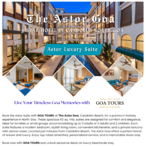 Discover the charm of Goa with GOA TOURS, offering expertly curated holiday packages with stays at luxurious 4 and 5-star hotels and resorts across North and South Goa. Whether you’re planning a romantic escape, a family vacation, a group adventure, or a solo retreat, our packages are tailored to meet diverse travel preferences with the highest standards of comfort and service.